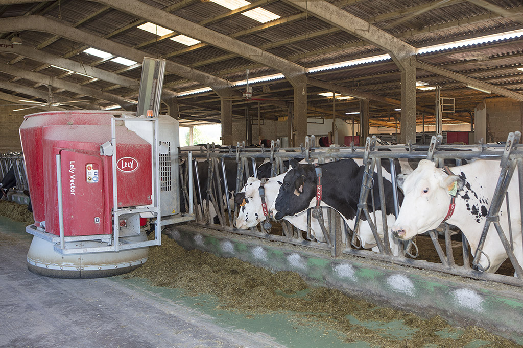Pero sin duda la gran novedad en la rutina de esta ganadería –y casi del sector, podríamos decir– ha sido la incorporación de un robot de alimentación. “Bueno, confiesa Eduardo, visto desde fuera puede parecer un poco locura, porque es novedoso en España. El caso fue que el carro mezclador, para el número de animales que tenemos, se quedaba un poco justo y desgastado y llegó el momento de cambiar el alimentador e incluso el sistema de alimentación. Desde el principio pensamos en un carro autopropulsado, pero un día, hablando con la gente de Lely, nos propusieron visitar unas ganaderías italianas que estaban usando su robot. El sistema te permite preparar los ingredientes de la ración para tres días, lo cual es en sí una ventaja, pero al trabajar con ensilados, teníamos miedo de que se pudieran calentar. Sin embargo, en Italia vimos que no tenían problemas con el ensilado, incluso con calor y humedad, y aunque sumar otro robot a los de ordeño nos echaba para atrás, al final nos decidimos”.
