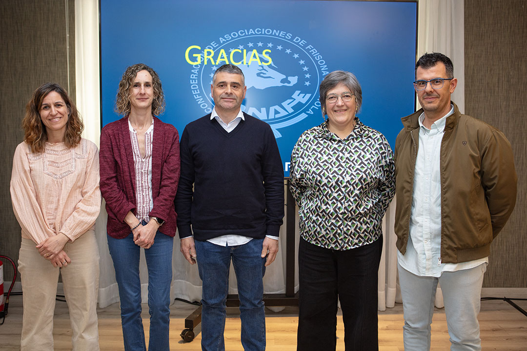 Intervinieron los miembros del departamento Técnico de la Confederación José Antonio Jiménez, que presentó los resultados del Programa de Cría en 2025 y las expectativas para 2026; Juan Pena, que habló sobre los caracteres de fertilidad en la evaluación genética; y Noureddine Charfeddine, que expuso los datos obtenidos con robot de ordeño, secuela del proyecto del grupo operativo AMSOS 360.