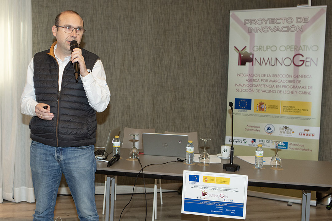 Completó el contenido técnico de la reunión Gerard Badia, de Neiker, que explicó el desarrollo y ejecución del proyecto GO_Inmunogen, que estudia el uso de marcadores genéticos que permitan evaluar y mejorar la susceptibilidad, resistencia y tolerancia a la Paratuberculosis en los Programa de Cría.